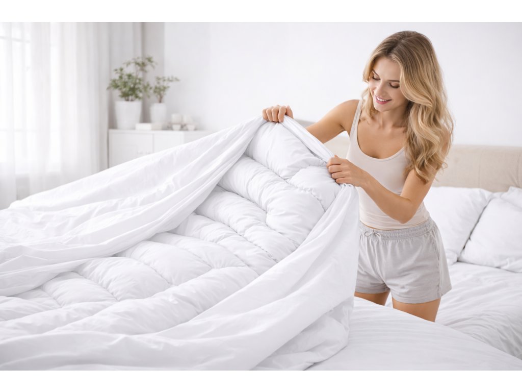Aby wypełnienie kołdry było równomiernie rozłożone i nie przemieszczało się, kołdrę z owczej wełny szyjemy gęściej. Dzięki temu możesz mieć pewność, że żadna część ciała nie zostanie odkryta.