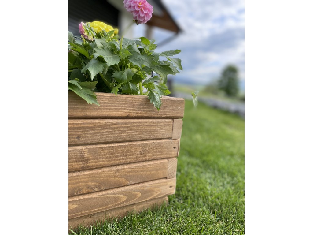 balkonu. Kwadratowa donica wykonana została z wysokiej jakości drewna świerkowego, co gwarantuje