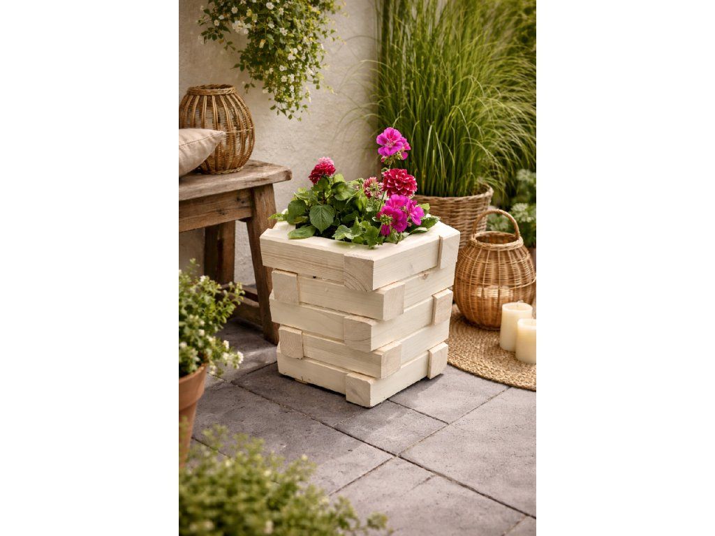 Każda donica jest unikatowa. Naturalne drewno może posiadać delikatne różnice w kolorze czy strukturze, co dodatkowo podkreśla jej autentyczny i niepowtarzalny charakter. 🌿✨