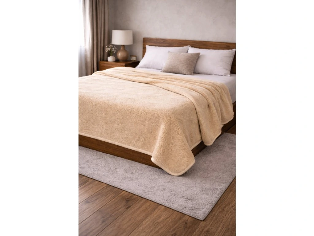 Dwustronny koc z wełny owczej – beżowy | Naturalne ciepło owczej wełny