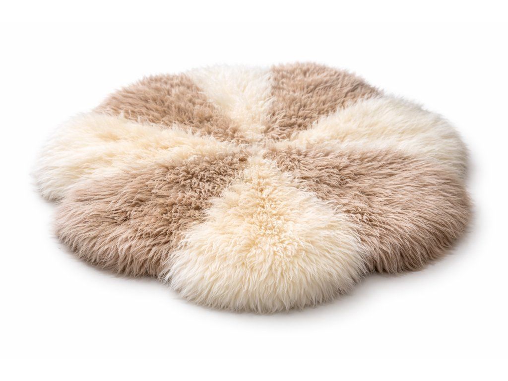 Luksusowy dywan ze skóry owczej – beżowo-biały okrąg dla ciepła i stylu Twojego domu