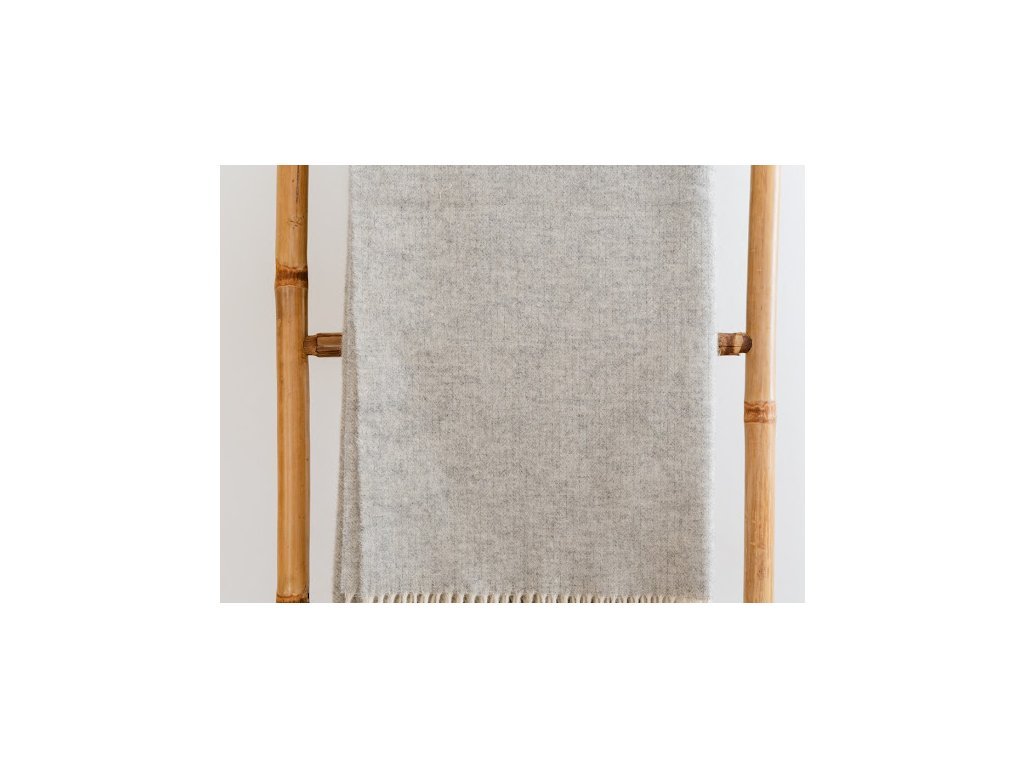 jasnoszary kolor i dekoracyjne frędzle nadają kocowi nowoczesny i ponadczasowy wygląd.