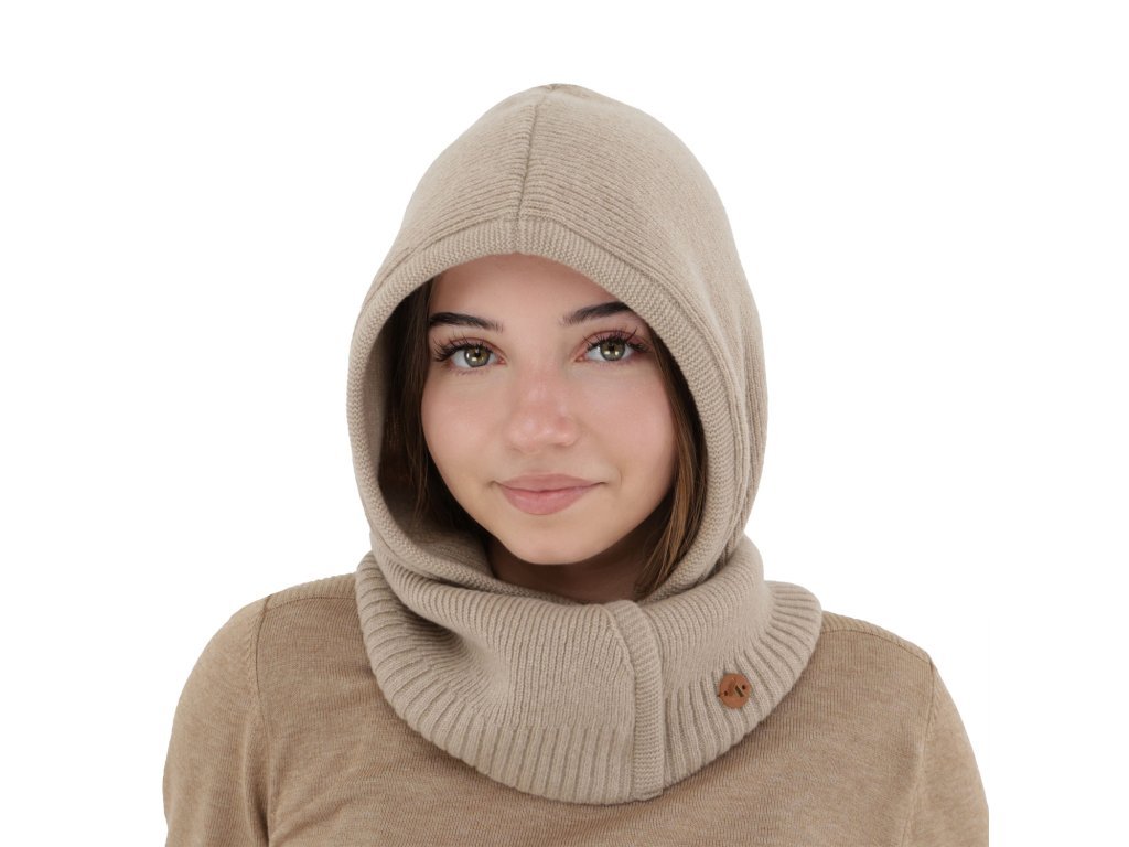 🧣 Beżowa kominiarka damska – luksus z wełny merynosów i kaszmiru