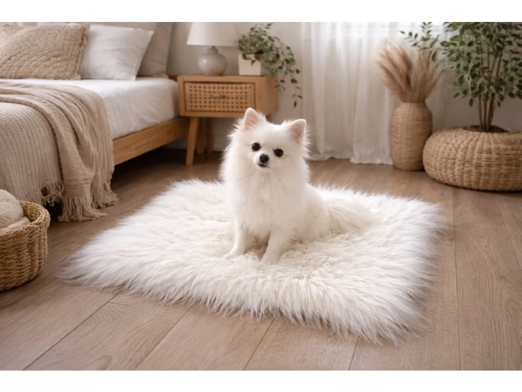 Mata dla zwierząt z owczej skóry – biała (60 × 40 cm)