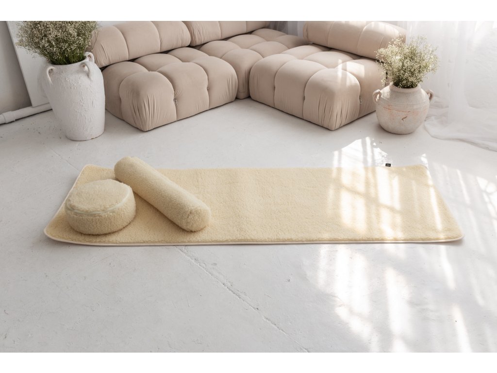 Mata z wełny merynosów zapewnia naturalny komfort bez konieczności stosowania sztucznych materiałów lub obróbki chemicznej. Nadaje się do wszystkich poziomów ćwiczeń i dzięki eleganckiemu wyglądowi pasuje do każdego wnętrza lub studia jogi.
